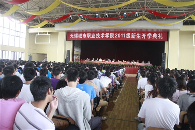 新的大学生活开启新的希望, 新的人生起点承载新的梦想。 9月29日上午9时, 我院2011级新生开学典礼在体育馆二楼大厅隆重举行,2344名2011级新生齐聚一堂。无锡职教园管委会副主任朱焱同志,新疆伊犁州霍城县江苏中学党支部副书记、副校长、新疆籍普通高校毕业生乡镇管理培训班领队唐昌松同志,院党委书记高国强同志,院长周伟灿教授,党委副书记刘彬同志,副院长邹亚平同志出席了开学典礼。同时参加典礼的还有学院各系、各部门党政主要领导。党委副书记刘彬同志主持开学典礼。