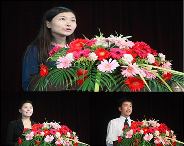 教师代表吕园园、在校生代表孟曼莉、新生代表王胜勋分别发言
