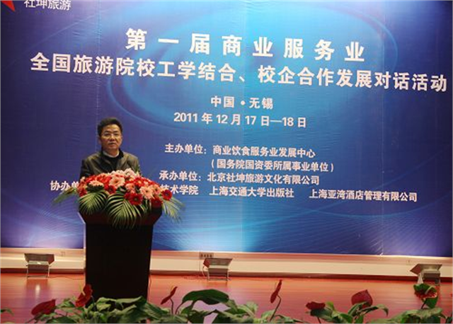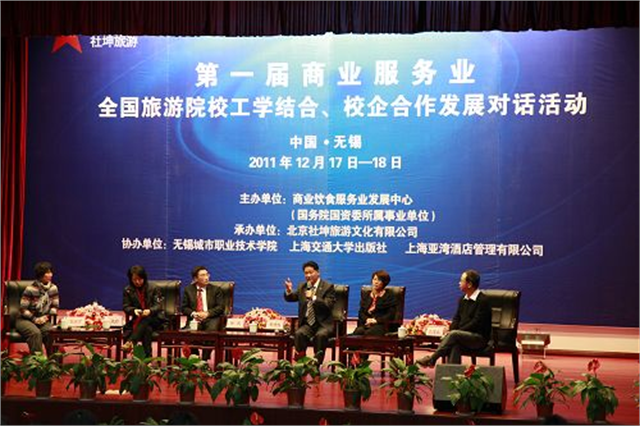 12月17-18日,首届商业服务业全国旅游院校工学结合、校企合作发展对话活动在我院举行。来自上海旅专、浙江旅院、南京旅院、金华职业学院、集美大学等100余名旅游院校的老师,以及来自上海浦东华美达酒店、上海浦东嘉里大酒店、无锡日航饭店、无锡君来洲际酒店、首旅集团等全国30余家高星级酒店的酒店人士汇聚在我院共话校企合作。国家旅游局综合协调司司长张坚钟、商业饮食服务业发展中心主任徐晶龙、无锡市旅游局副局长刘和平、无锡教育局副局长符菊成、无锡旅游协会会长王洁平等领导出席活动。我院院长周伟灿教授在开幕式上致欢迎辞。 |
