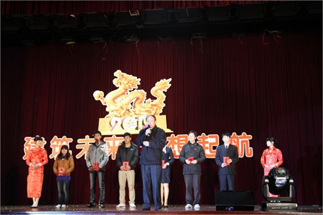 12月21日晚,我院建筑工程系迎新系列之“建筑未来·梦想起航”文艺晚会暨表彰大会在体育馆二楼隆重举行。院党委书记高国强同志、学工处处长苏兴华同志、基础科部副主任陆永宽同志以及建工系党政领导、教师代表、优秀毕业生代表和建工系全体在校学生参加了晚会。