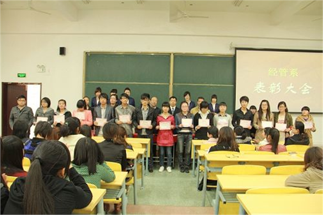 3月28日下午,我院经管系表彰大会暨基层组织建设推进会在阶梯教室111举行。表彰大会上,系主任鲁继业同志宣读表彰决定,评选出“文明班级”和“红旗团支部”各三个,经管之星6人,班级之星244人。与会领导及教师为获奖班级、个人颁发了奖状和证书。系党总支书记赵宏宾在讲话中希望全系师生要以“基层组织建设年”为契机,加强教研室、班级、党支部、团支部各项基层组织建设,狠抓落实,为促进系部事业快速健康发展而努力奋斗。